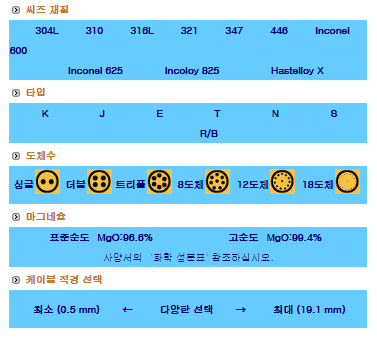 콘덕터 수 T/C 타입 RTD 케이블 도체 재질 씨즈 합금 종류